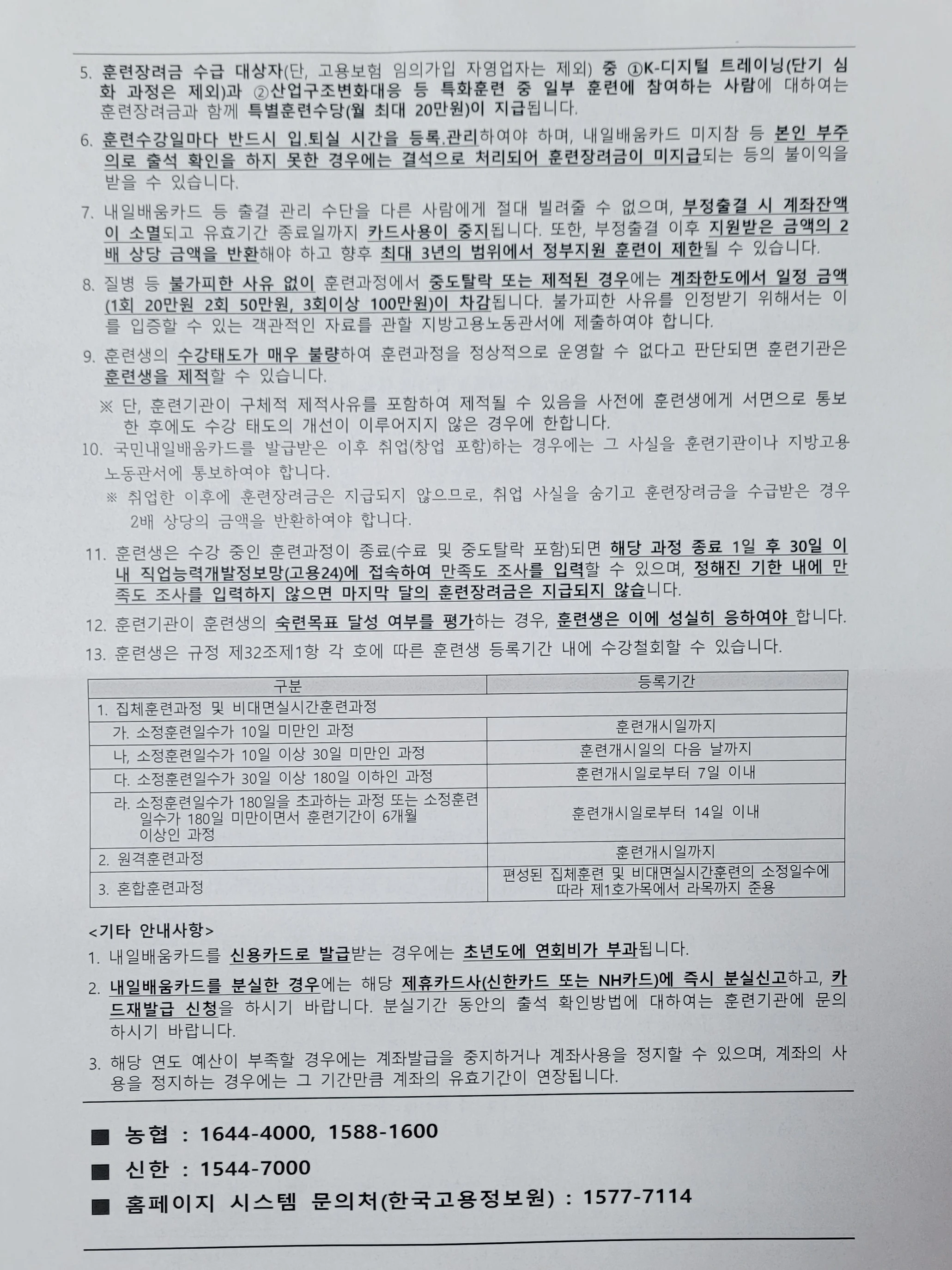 국민내일배움카드의 권리 및 의무사항