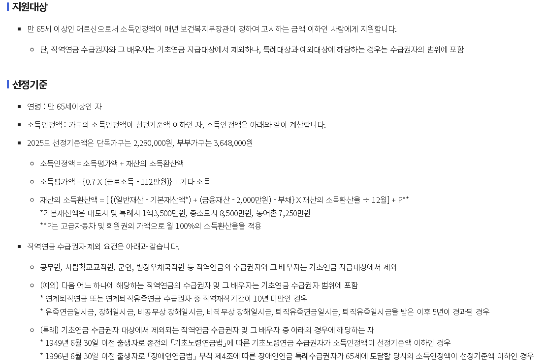 2025년 기초연금 수급자격 요건