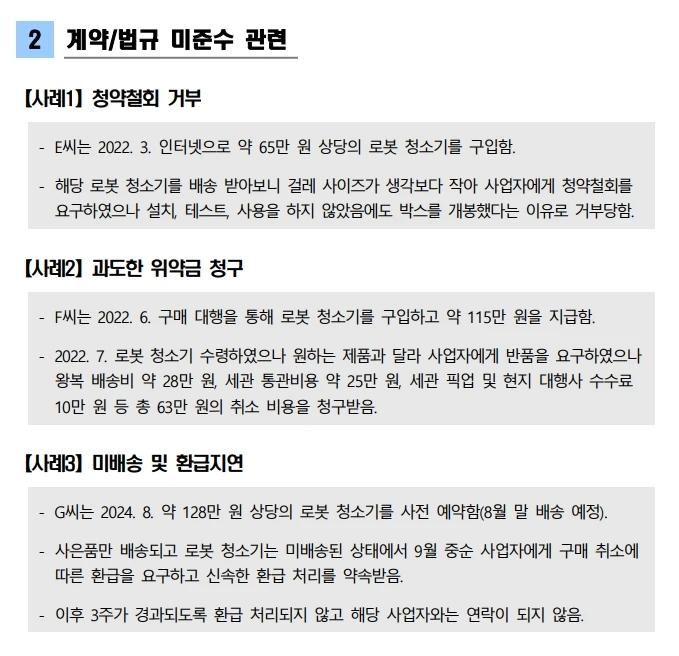 - 과도한 위약금: 해외 구매대행 반품 시 60만 원 이상 청구