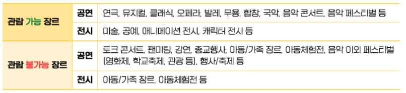 - 🎵 NOL(인터파크): 뮤지컬, 콘서트, 대중 공연이 많은 편