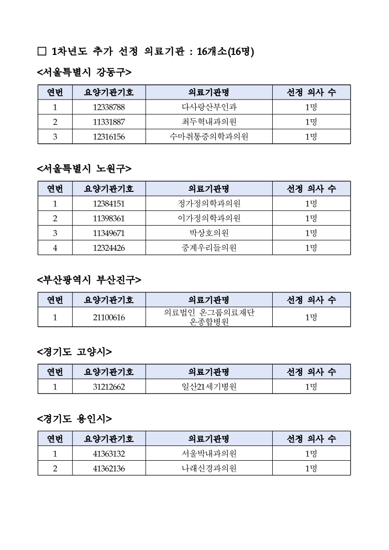 1차·2차 시범사업 지역 및 의사(의료기관) 선정 현황