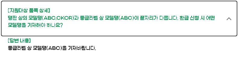 구체적인 모델명 확인 방법 및 "환급 가능 제품 찾기" 링크